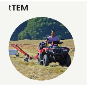 The tTEM geoscanner is designed to be towed by an All-Terrain Vehicle (ATV) / Quad bike to deliver high-resolution, subsurface layer images. The system can be configured with different sizes of transmitter coils by changing the length of the fiberglass beams (wings) carrying the coil.